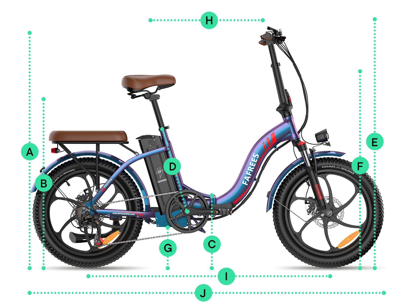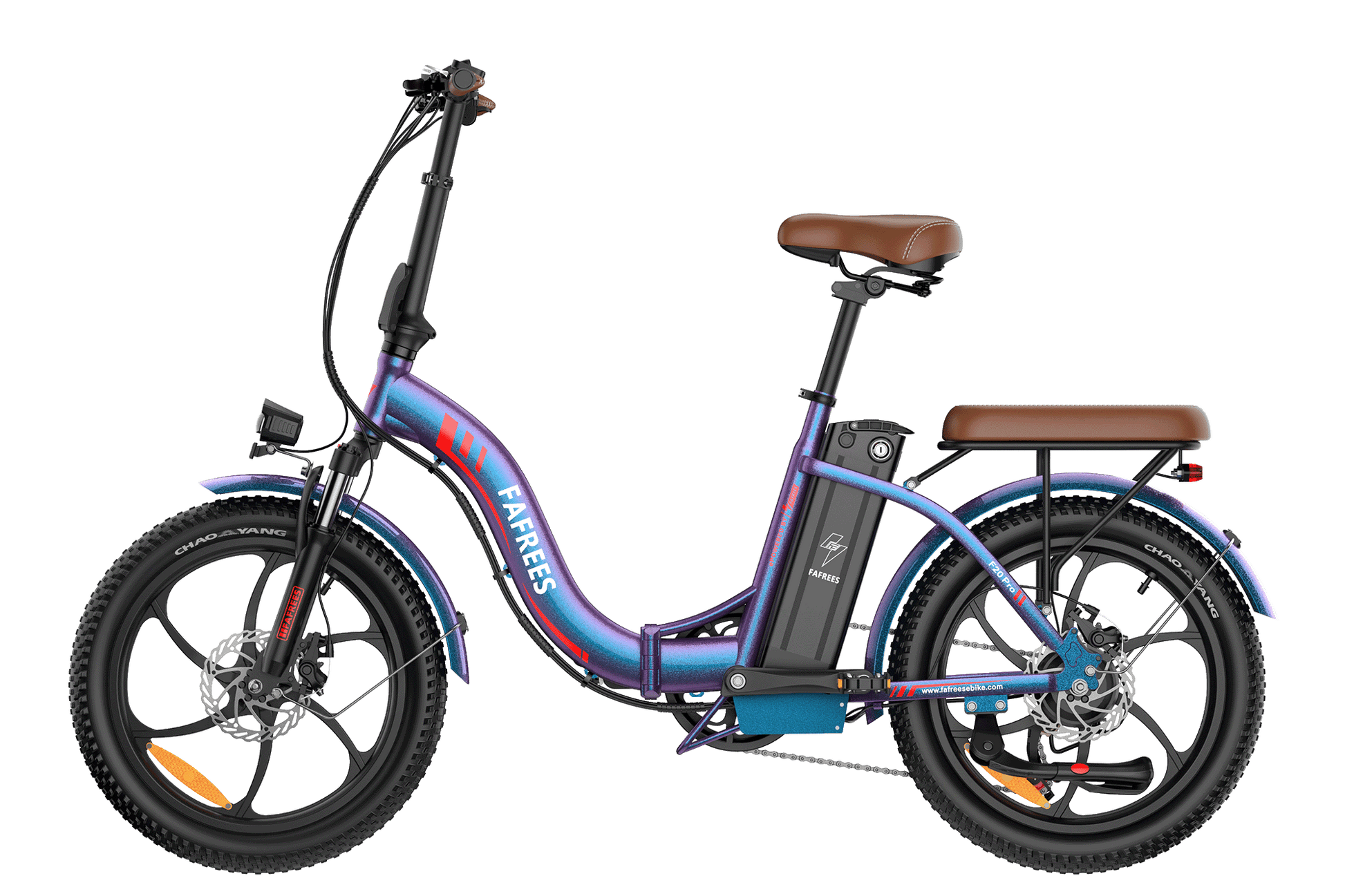 Vibrant and capable, the F20 Pro features a bold color-shifting paint, an upgraded 20Ah battery, 3.0 fat tires, and a foldable step-through frame. Ideal for stylish, confident everyday rides.